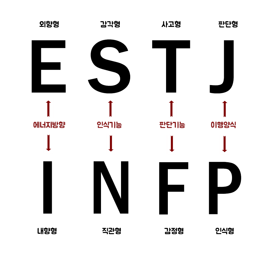 Instrovert (내향적), iNtuitive(통찰력), Feeling (사고형), Perceiving (판단형)